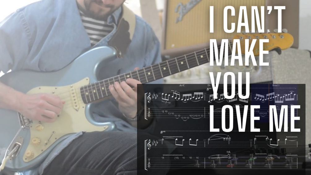 A full transcription (guitar pro file and PDF) of all the parts and solo from my improvised arrangement of "I Can't Make You Love Me", alongside the Backing Track, and an mp4 video with the tab played along with the video.